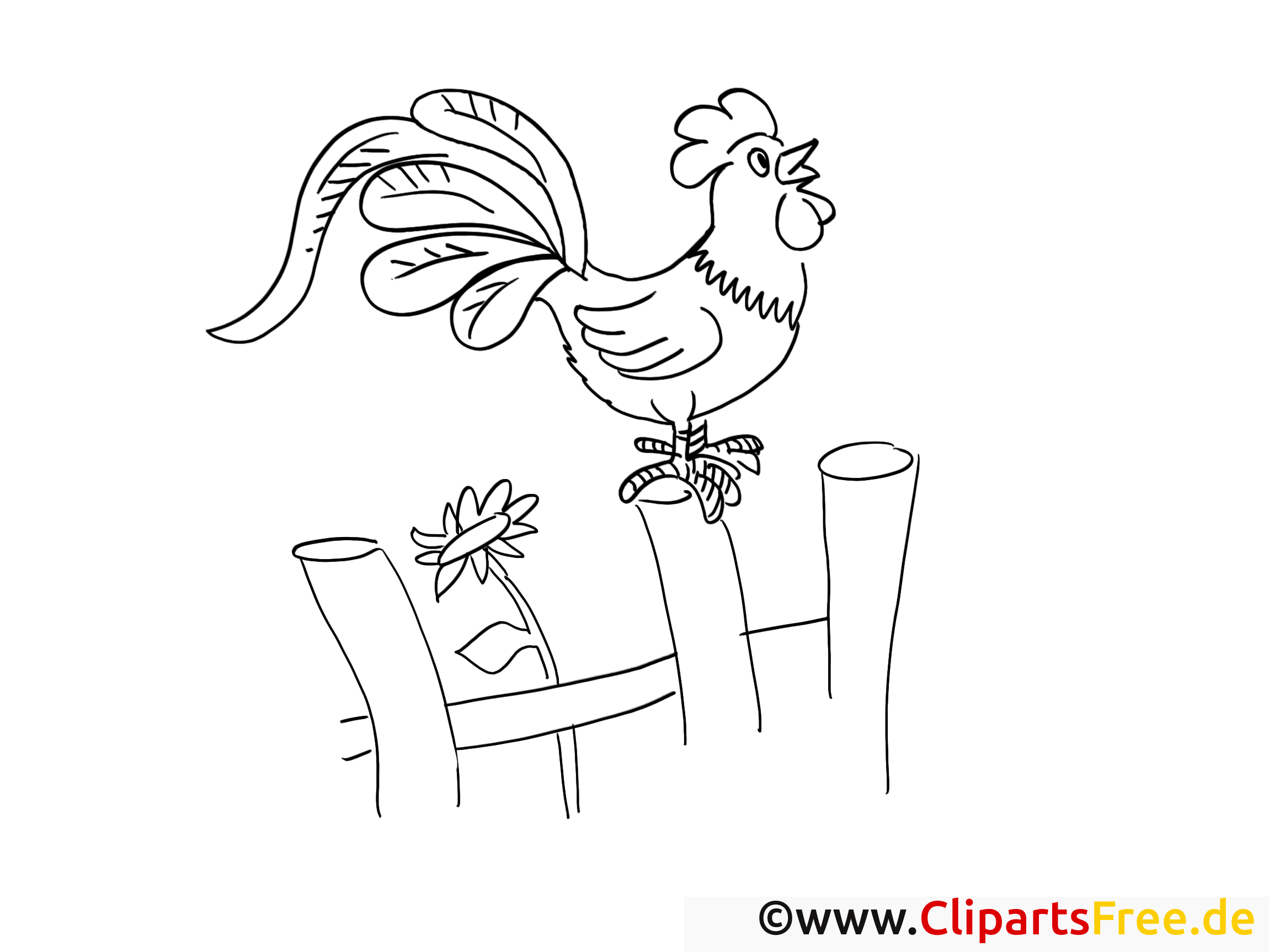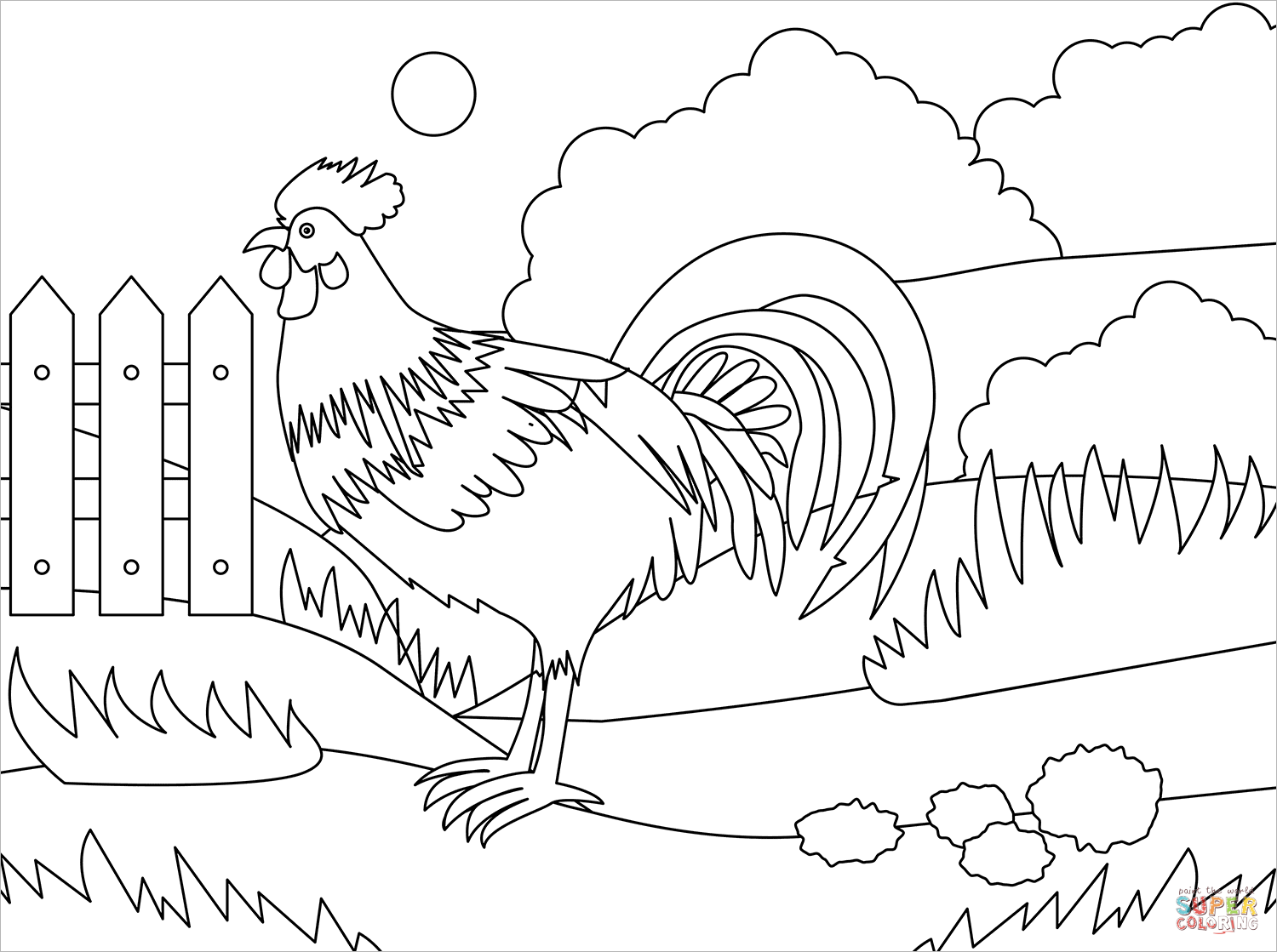 Раскраска петушок на заборчике