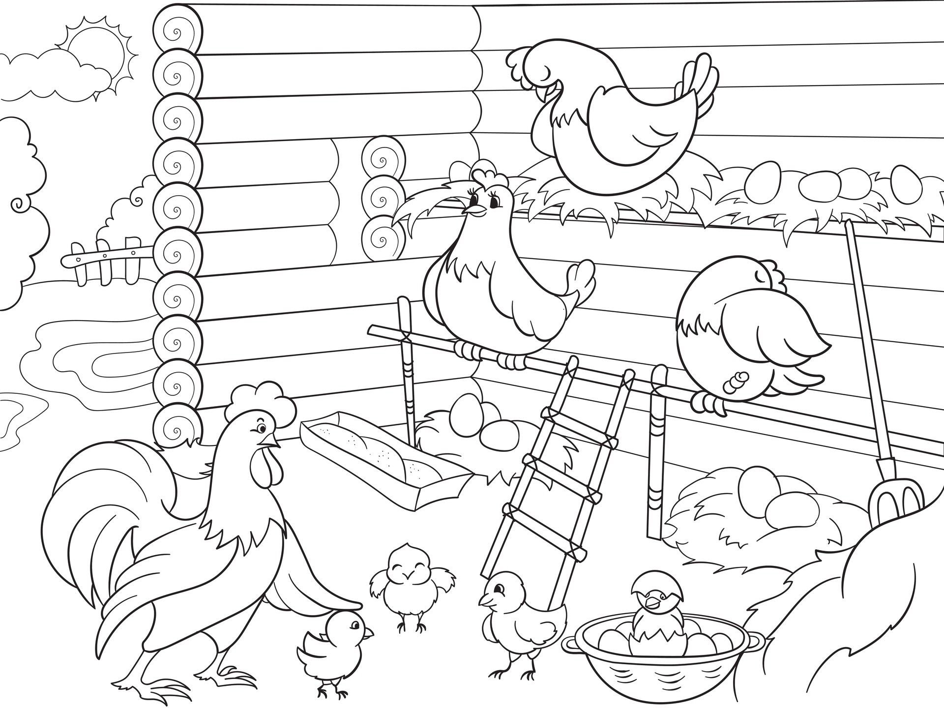 Раскраска курятник