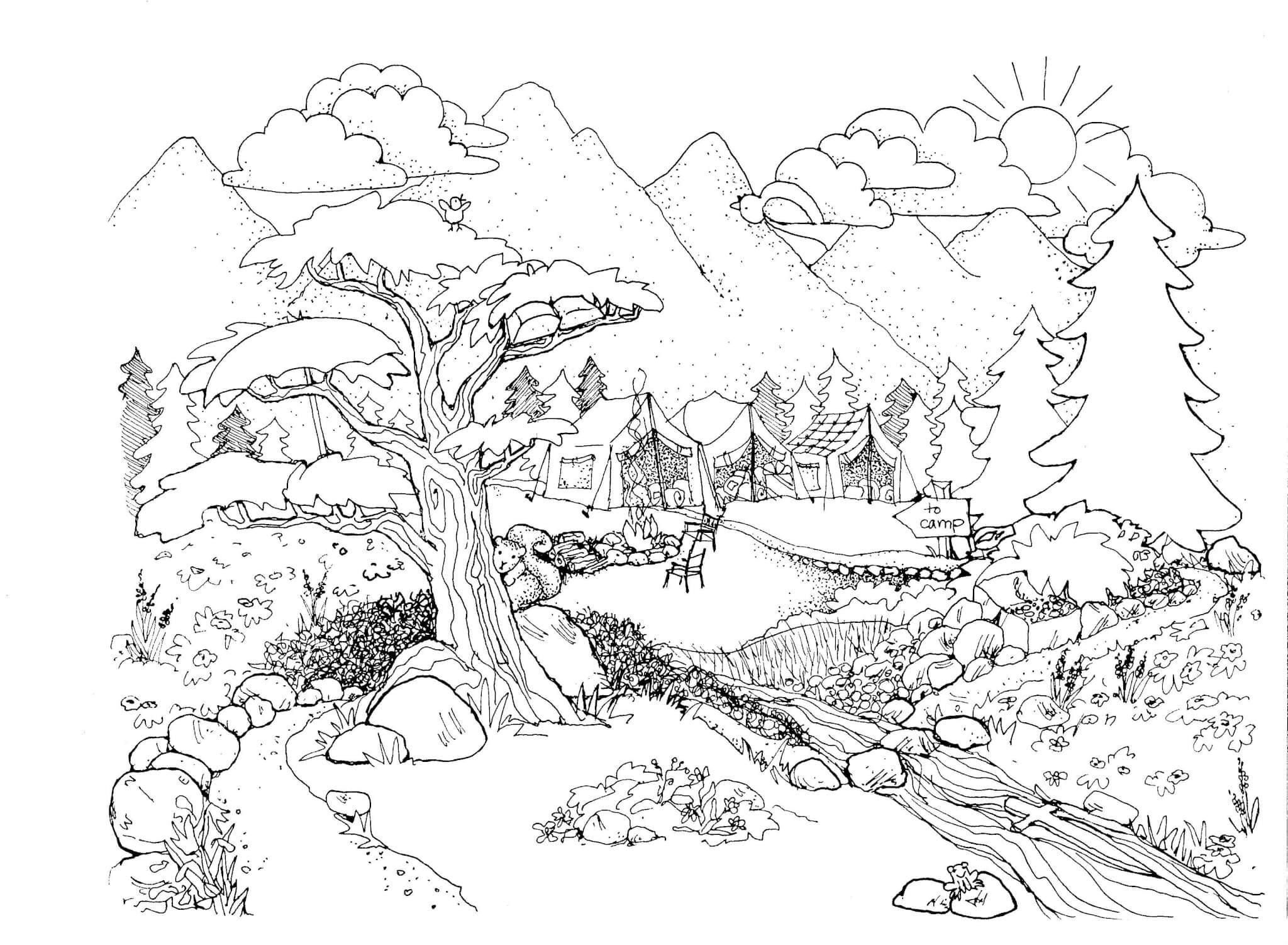 Раскраска пейзаж природы