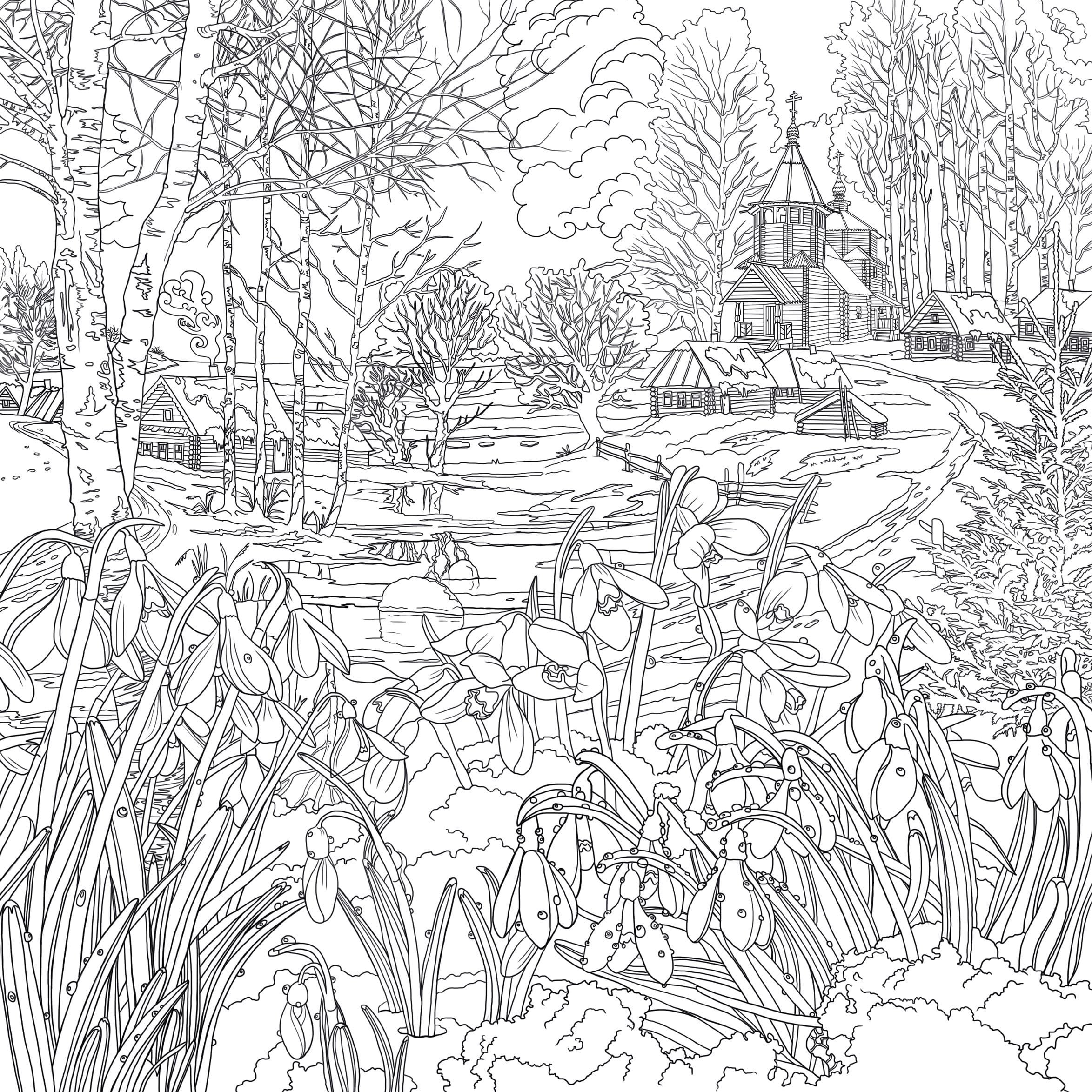 Сложные раскраски с пейзажами