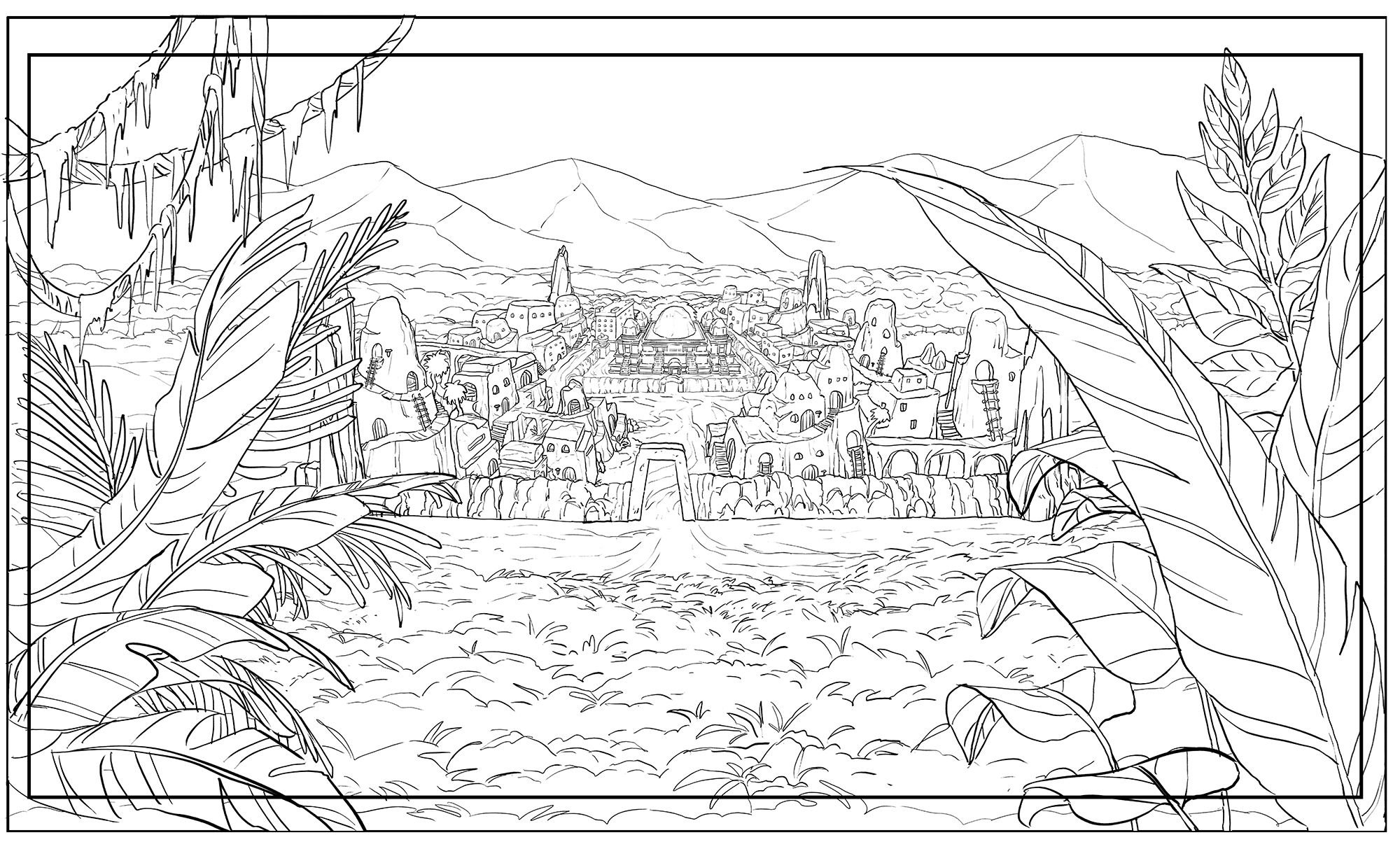 Раскраска фэнтези пейзаж