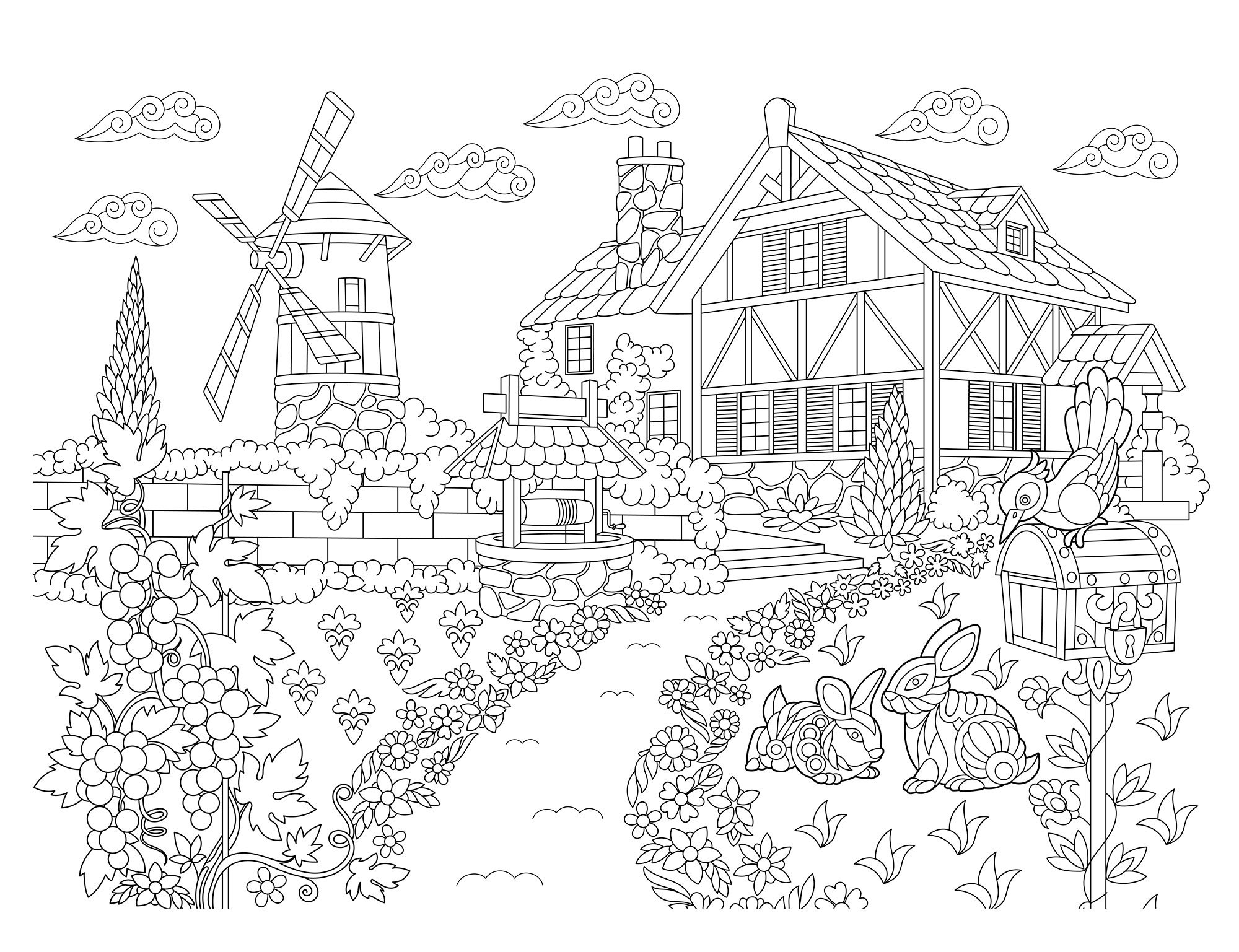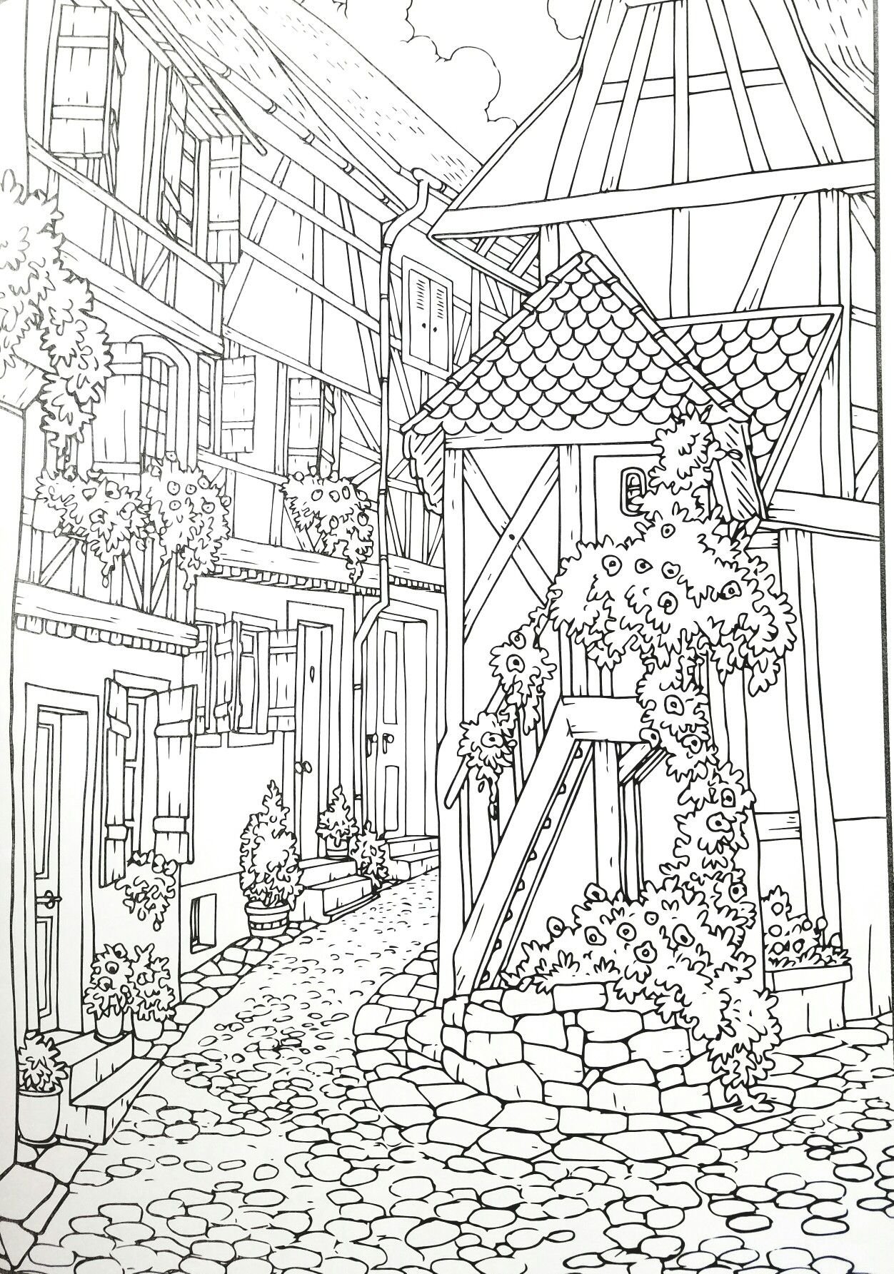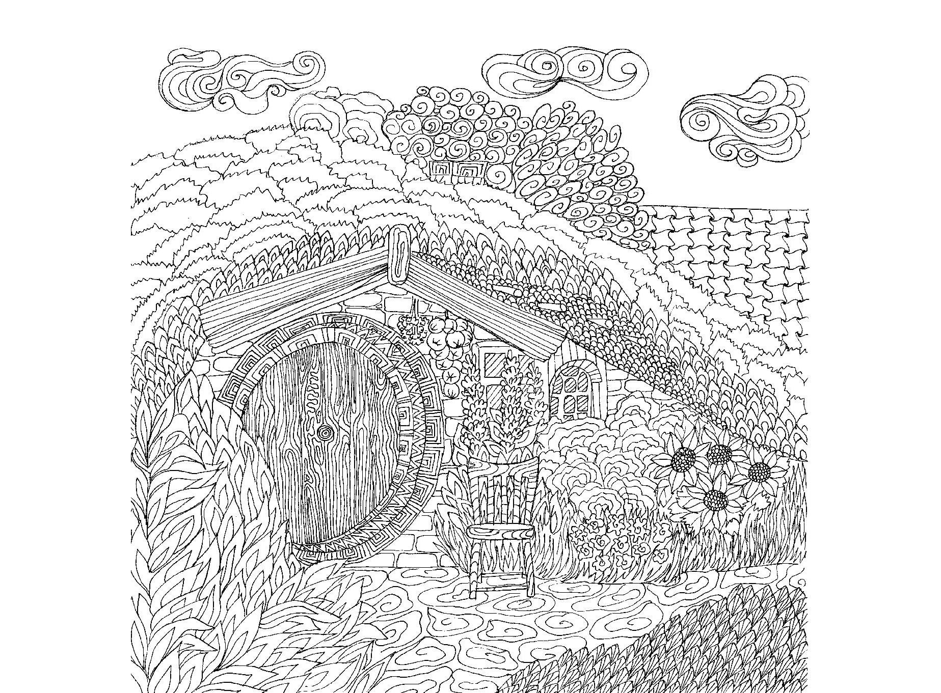 Раскраски антистресс деревня