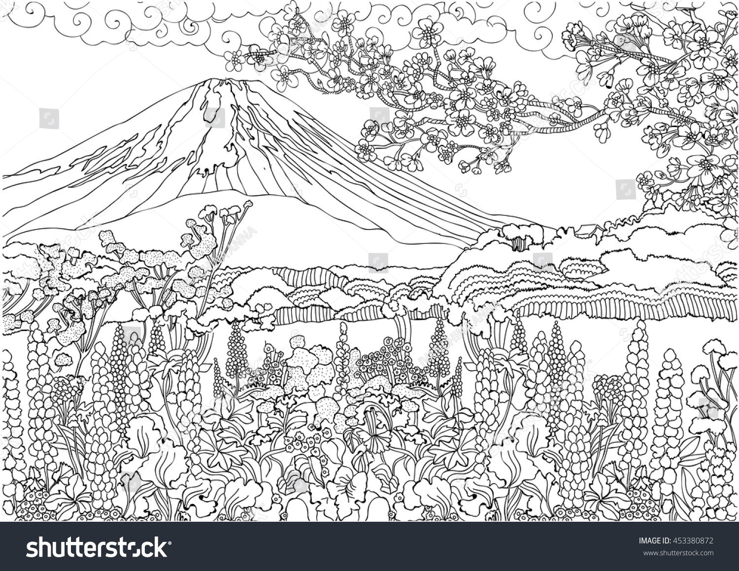 Японская природа раскраска