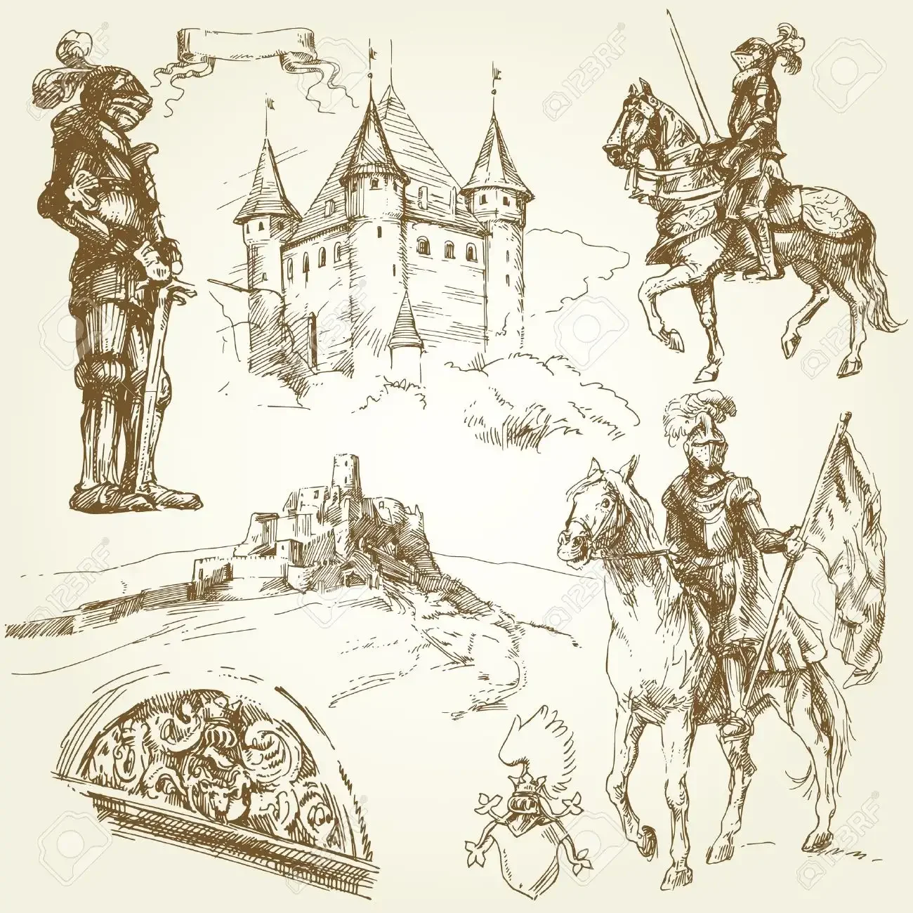 Гравюры рыцарей средневековья