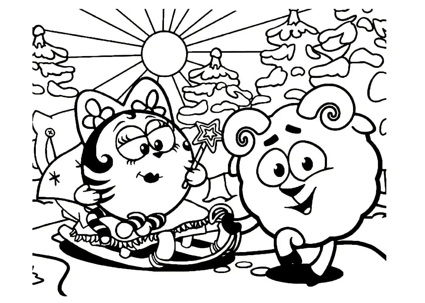 Новогодние Смешарики раскраска