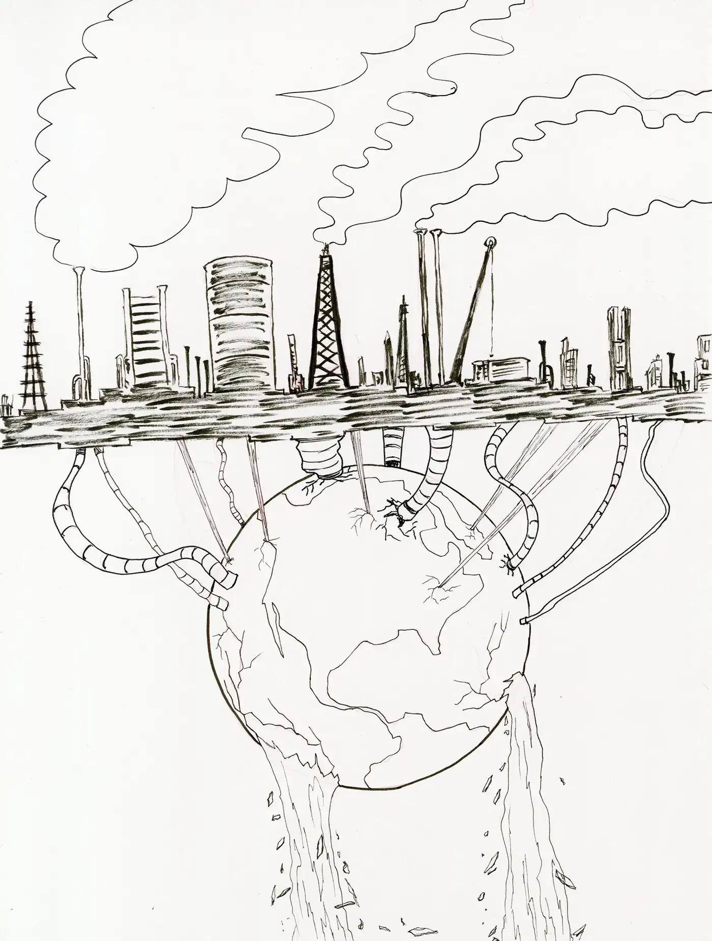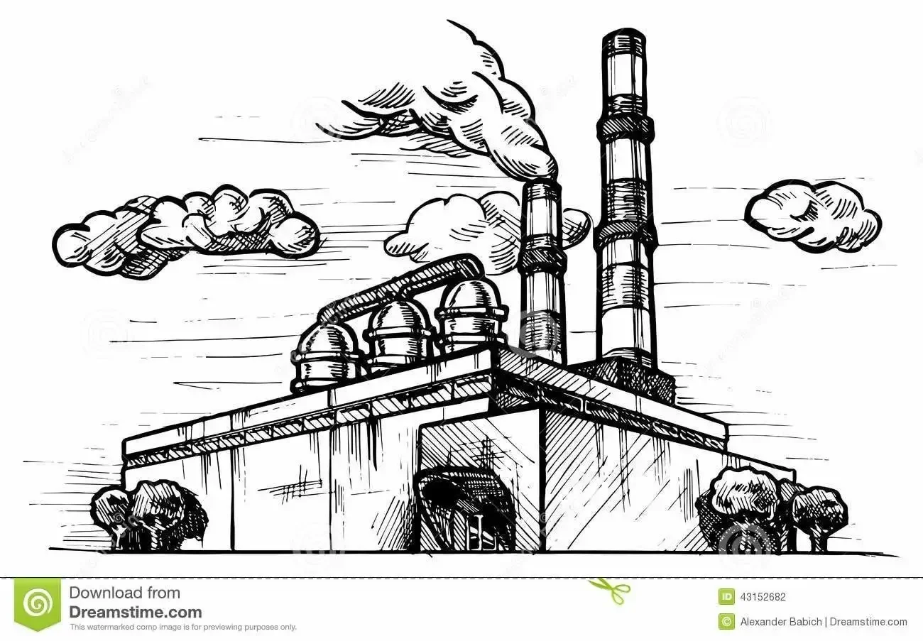 Индустриальный пейзаж карандашом