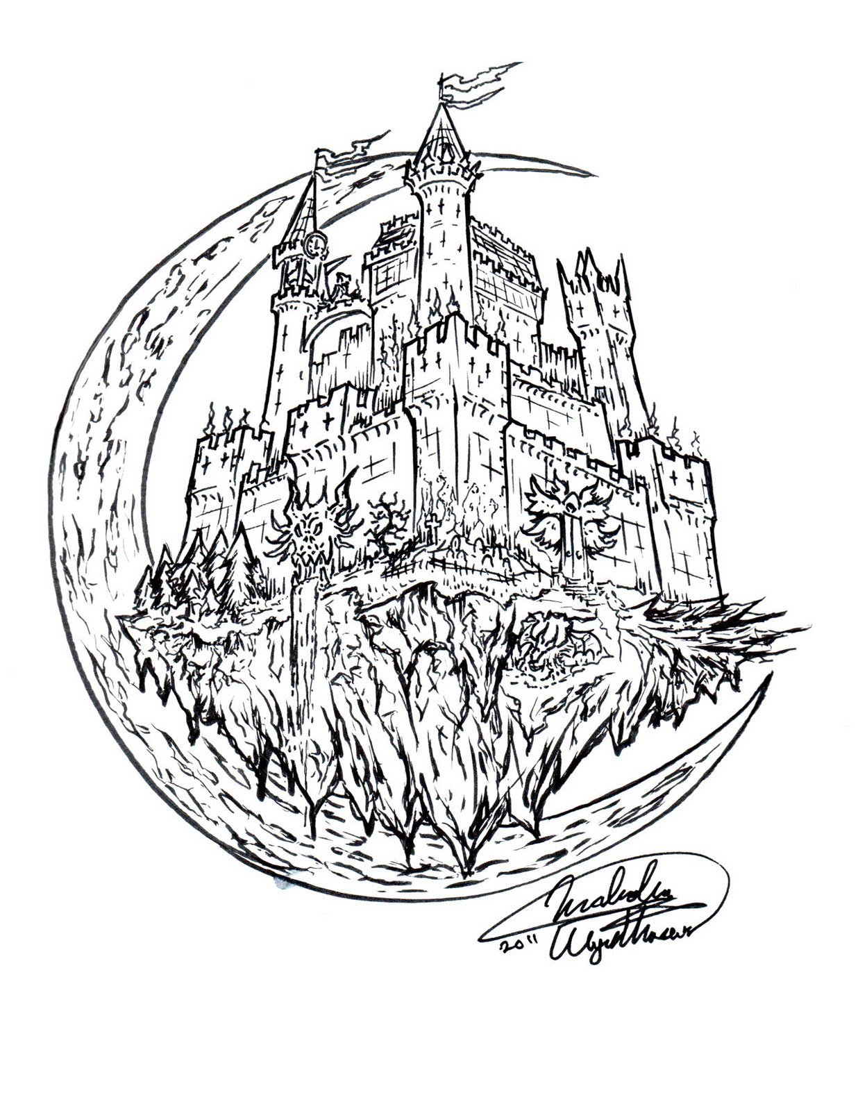 Эскиз замка в готическом стиле