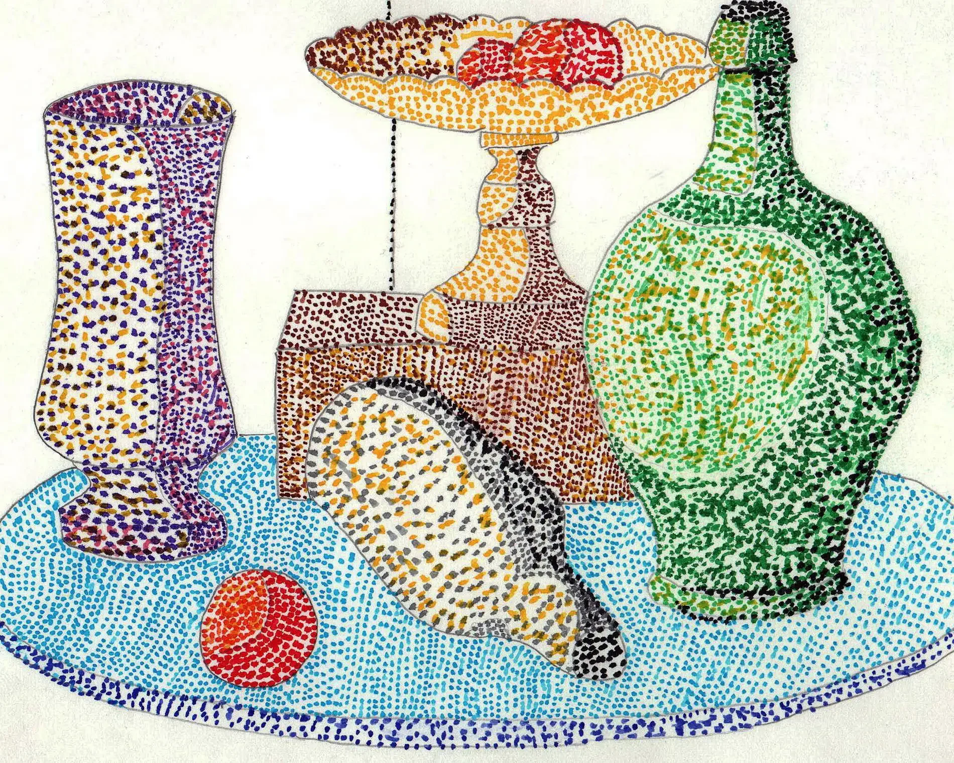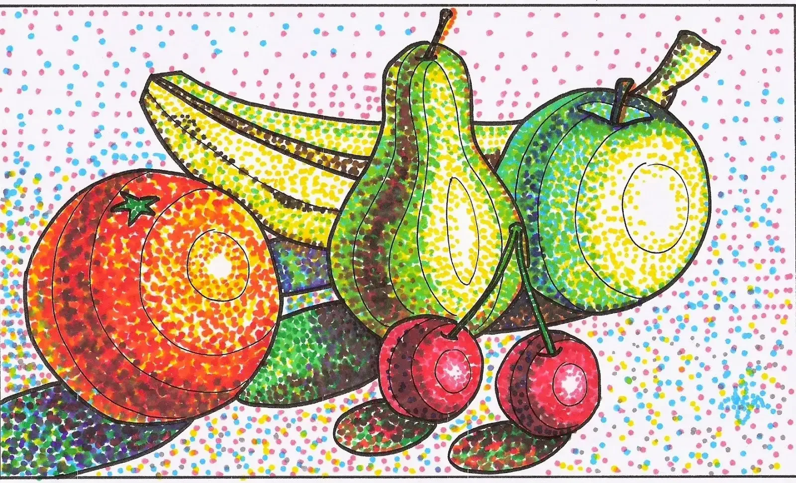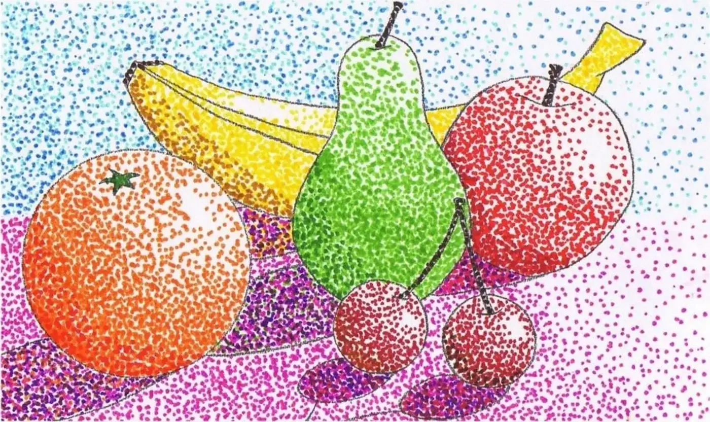 Пуантилизм техника рисования для детей натюрморт