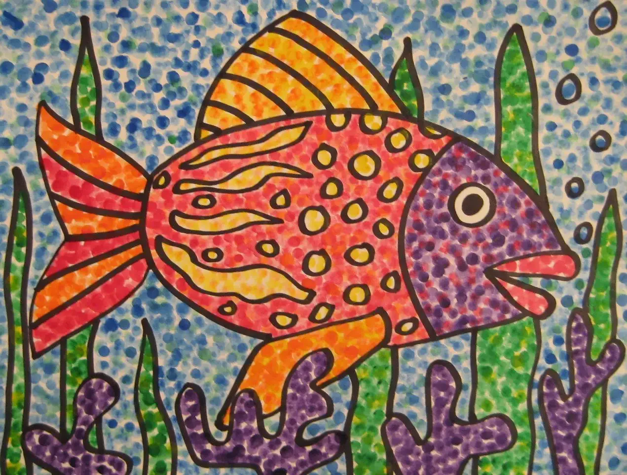 Пуантилизм для детей рыбка